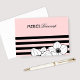Elegant and beautiful folded thank you "Merci Beaucoup" note card design features an organic floral border of black and white anemones accented by chic horizontal black stripes on a light ballet pink background.