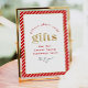 This Secret Santa gift exchange sign features red and white candy cane stripes with a festive faux gold foil font. This poster sign is perfect for your Christmas dinner or office holiday party gift exchange.
