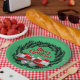 9" Plate - - Meri Kirihimete - Maori Merry Christmas on Black Ferns with Red & Silver Bow - - - - See the Collections in my store for the Matching Plates, Napkins, Coasters, Placemats, Balloons and much more, - - in this and other Christmas designs.
