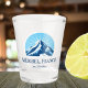 Shotglass from Méribel Meribel France with a gorgeous blue mountain with a sunny background and the option to add text.