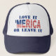 It's the very patriotic, 'MERICA US Flag - Love It Or Leave It trucker hat! Perfect for 4th of July parties, or ANY day of the year...Grab yours today!