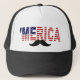 From the designer of the original, best-selling 'MERICA US Flag Hat, comes the much-anticipated Official MUSTACHE VERSION!! Whether you are celebrating your love and patriotism for America, or spreading awareness for men's health, the new 'MERICA Moustache Trucker Hat is the best way to do it! A perfect Christmas or holiday gift, and a fun hat for 4th of July cookouts too!