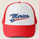 It's the very patriotic 'MERICA US Flag Swoosh Trucker Hat A classic trucker hat for the 4th of July, Memorial Day, Veteran's Day, or ANY day of the year! Grab yours today, and wear it with pride!