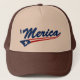 It's the very patriotic 'MERICA US Flag Swoosh Trucker Hat A classic trucker hat for the 4th of July, Memorial Day, Veteran's Day, or ANY day of the year! Grab yours today, and wear it with pride!