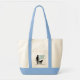 Love the durable cream colored canvas and navy blue contrasted handles. Perfect for carrying my laptop and papers.