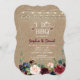 Unique, rustic design card featuring beautiful I DO BBQ typography (letter O replaced by a ring), hearts for initials, string lights, watercolour merlot and navy blue floral bouquet, on an burlap background. Use Customise tool to add your info. See, also, my I DO BBQ Chalkboard/Barn and Gingham collection.