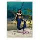3D digital render of a cute mermaid on blue fantasy ocean background
