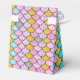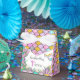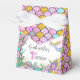Mermaid 1st Birthday Favour Box with pastel pink, gold glitter, teal blue mermaid scales, mermaid tail, coral reef, seashells and under the sea design. Personalise with your baby girl's name for a custom first birthday mermaid party accessory.