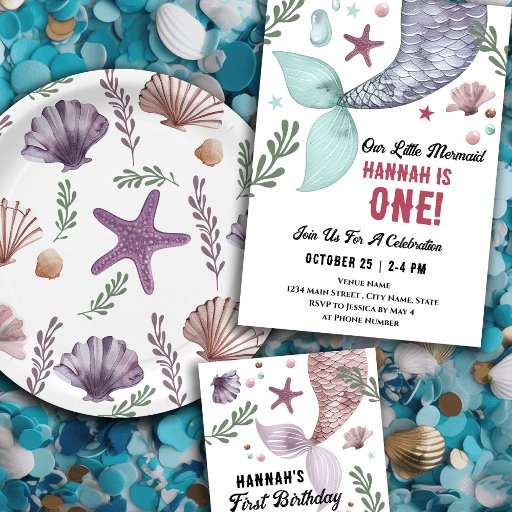 Mermaid 1st Birthday Sea Invitation