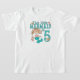 Under the sea theme fifth birthday with cute mermaid wearing turquoise and shell pink, with seahorse's and starfish. Text reads 'This little mermaid is 5".