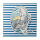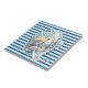 Bright blue and white horizontal pattern design ceramic tile with a nautical ocean theme features a mermaid and a white anchor!