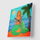 Mermaid and Palm Tree Abstract Painting Square Wall Clock