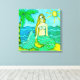 My colourful abstract digital painting of a mermaid sitting under a palm tree printed on gallery wrapped canvas
