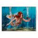 Cute mermaid holding a sea lily flower on blue fantasy ocean background