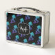 Mermaid aqua blue ombre Sparkles pattern Monogram Metal Lunch Box