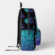 Mermaid Sparkles Monogram Backpack. Personalise with your custom initial and name. Beautiful girly aqua blue faux glitter sparkly mermaids pattern for her. You can customise background. Please note we use photo of sparkles not actual glitter!