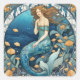 Mermaid Art Nouveau Aqua Blue Turquoise Art Deco Square Sticker