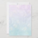 Mermaid baby shower invitation for girl featuring hand-drawn illustration of sweet mermaid mother and daughter scene, decorated with fishes, harp and flowers, against lavender/turquoise or teal ombre background. The back features the an under the sea themed pattern, with shells and starfishes. Easily customise with your own text today.