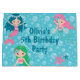 Mermaid birthday party gift bag with a custom name, age, and a thank you message on the back. Party supplies for an ocean-themed party of a girl that loves mermaids. Be sure to visit our collection to see more coordinating items that match this design for your special event.