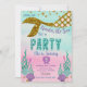 Little girl Mermaid Birthday invitation with gold glitter fin.