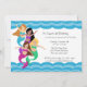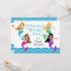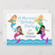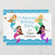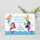 Four pretty mermaids on this fun mermaid birthday party invitation. Customise text to suit your own style.