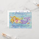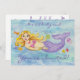 Pretty mermaid, surrounded by shells, starfish, and jellyfish, invites guests to a girl's birthday party.