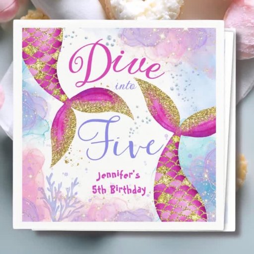 Dive into Five! Girls Pink Mermaid 5h BirthdayDesigned by H-Art Studio Design