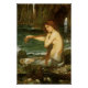 A Mermaid (1901) by JW Waterhouse is a vintage Victorian Era Pre-Raphaelite fine art portrait painting. A mermaid is brushing her hair on the beach by the seashore. A mermaid is a mythological aquatic creature that is half human and half fish.