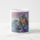 If you love mermaids, then this painting is for you. Mermaid Castle painted by Traci Van Wagoner features a mermaid with purple hair in front and a mermaid with green hair sunning herself on rock islands while another mermaid with pink hair swims in the ocean in front of a castle with a purple, orange and yellow sunset sky behind. This beautiful and whimsical fantasy art makes a great gift and a stunning decoration for your office or home.