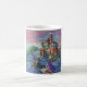If you love mermaids, then this painting is for you. Mermaid Castle painted by Traci Van Wagoner features a mermaid with purple hair in front and a mermaid with green hair sunning herself on rock islands while another mermaid with pink hair swims in the ocean in front of a castle with a purple, orange and yellow sunset sky behind. This beautiful and whimsical fantasy art makes a great gift and a stunning decoration for your office or home.