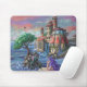 If you love mermaids, then this painting is for you. Mermaid Castle painted by Traci Van Wagoner features a mermaid with purple hair in front and a mermaid with green hair sunning herself on rock islands while another mermaid with pink hair swims in the ocean in front of a castle with a purple, orange and yellow sunset sky behind. This beautiful and whimsical fantasy art makes a great gift and a stunning decoration for your office or home.