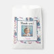 This personalized mermaid cat birthday favor bag features a whimsical cat mermaid background with a coordinating frame, a “Thank You” message, your child’s photo, and name. Designed as a charming keepsake, it’s a sweet way to thank guests for celebrating a special birthday.