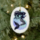 Christmas ornament shown in a oval shape with a fancy mermaid print.
