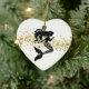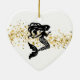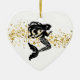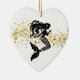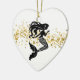 Christmas ornament shown in a heart shape with a fancy mermaid print in black and white.