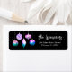 This elegant and glamourous holiday address label features pink and purple mermaid bauble ornaments on a black background. The text combines handwritten script and modern sans serif fonts for a classy and sophisticated look. The sparkles and glitter add a festive and magical touch. This is perfect for Christmas and the holiday season.