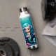 The bottle looks even better in real life. The ice cubes I put in lasts all day! I have my bottle with me all the time. It's summer and having something cold to drink feels amazing. With this bottle I always have something super cold. I have only tried the hot drink once and it lasted a long time as well. The color blue is a navy blue and the white printed on it is vibrant. It printed perfectly. I love my personalized smile water bottle.