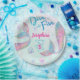 Mermaid dive into five birthday watercolor round paper plate