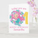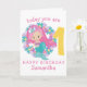 A sweet pink mermaid birthday card for a little girl. This design may be personalised by clicking Personalise this Template and then choosing the click to customise further option and delete or change the colour of the background, add text, change the text colour or style, or delete the text for an image only design. If this product has the option to transfer the design to another item, please make sure to adjust the design to fit if needed. Contact me at partypirates@yahoo.com or use the chat option at the top of the page if you wish to have this design on another product or need assistance.