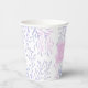 Add a touch of sophistication to your mermaid 1st birthday party with these beautifully designed paper cups! The design features delicate floating seaweed motifs painted in soft violet and pink watercolor on a crisp white background. At the centre of each cup, a pale pink rectangle elegantly displays the birthday girl’s name and age in white lettering — creating a clean, modern, and elegant look that perfectly complements any under the sea 1st birthday or ocean-themed celebration.