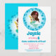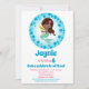 A cute African American mermaid in bubbles for this sweet blue birthday invitation.