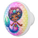 This ceramic cabinet knob is shown in white with a cute colourful mermaid girl print.