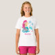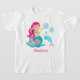 Customise this beautiful pink haired mermaid birthday party girls t-shirt by adding your kid's name. Cute mermaid design with pretty underwater ocean narwhal and under the sea bubbles. Cute gift for a beach or pool outing in the summer.
