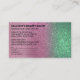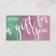 This is the perfect gift certificate business card for a trendy, stylish, girly, and modern businesswoman. This design features a simple white handwritten brush script typography on a faux printed mermaid green into rose pink green into blush pink sparkly glitter ombre gradient glamourous and chic background. It's the perfect way to allow your customers to buy a gift for their family and friends and at the same time promote your business.