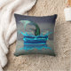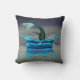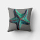 Throw pillow with image of mermaid fin on the front and a starfish against a grey background.