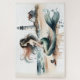 Mermaid Lighthouse Coastal Watercolor Scene Jigsaw Puzzle