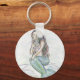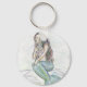 Art shows a mermaid sitting on a rock gazing out on the ocean. Customise this key chain with your options to make special mermaid gifts.