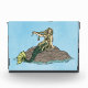 A blonde haired mermaid sits on a rock in this original fantasy artwork by Richard H. Fay.