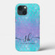 Modern blue & purple glitter mermaid colours monogrammed case with chic and girly glitter sparkles with a modern elegant script calligraphy.