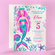 Mermaid Pink and Turquoise Girl's Birthday Party Invitation