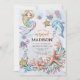 A magical mermaid birthday party invitation under the sea scene with sea shells, dolphin, coral, tortoise and starfish. Pretty watercolor with cute mermaid. Create a magical whimsical theme for a summer season birthday to customise for any age from ages 1-6 or over.